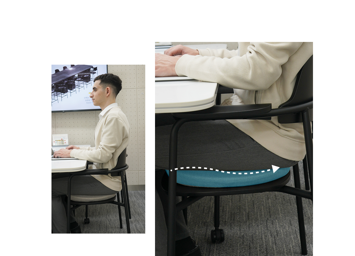 친구들과 공원에서 쉬거나 회사에서 회의할 때도 바른 자세를 만들어드립니다.