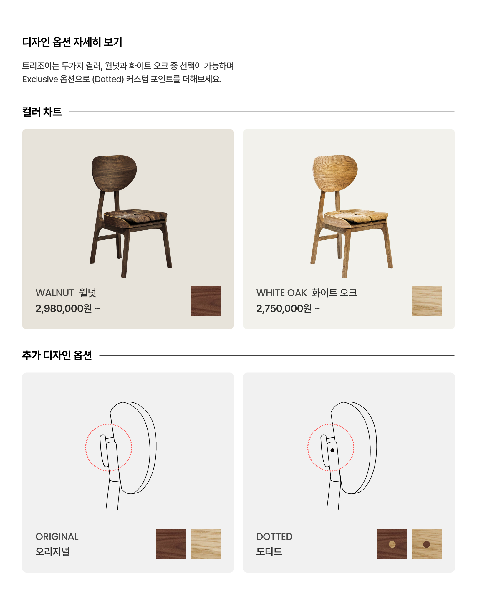 같은 제품이라도 옹이가 생길 수 있으나 이는 지극히 원목의 자연스러운 현상입니다.
